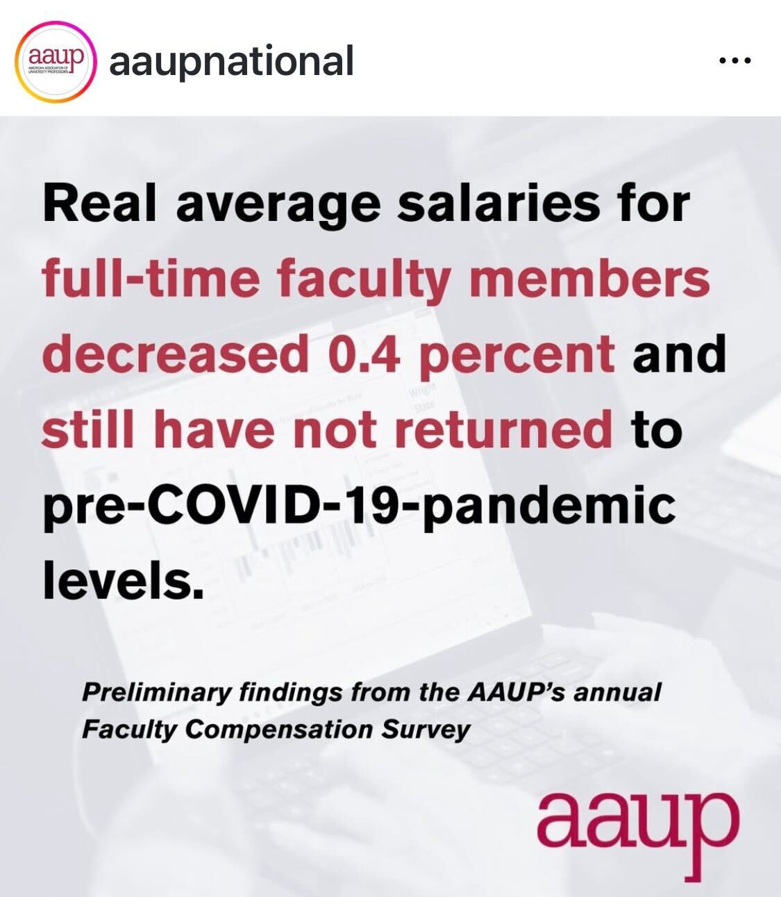 Management presented a counter on Compensation, increasing their previous offer of 1% annual increases per year to just 1.25% per year. Management’s counter would also limit which of our members would be eligible for even that measly amount based on annual evaluations. We are committed to continuing to fight for fair raises for all bargaining unit members, especially given that real average wages for full-time faculty members nationally decreased 0.4 percent in 2025 and still haven’t returned to pre-Covid-19 pandemic levels (according to preliminary findings from AAUP’s annual Faculty Compensation Survey).